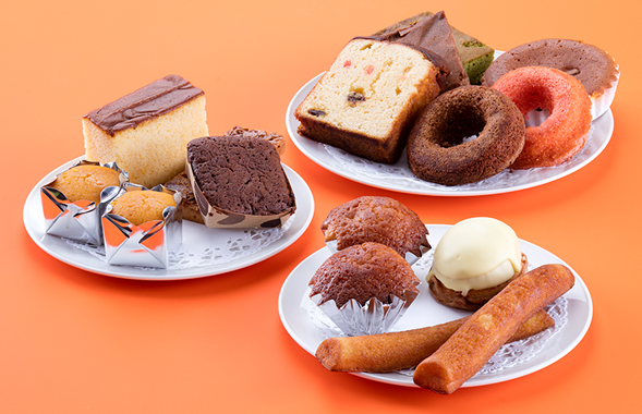 パウンドケーキ、ミニマドレーヌ、カステラ、ショコラ、マドレーヌ、かぼちゃフィナンシェ、フロランタン、フィナンシェ×2、レモンケーキ×2、バターケーキ×2、焼きドーナツ×2